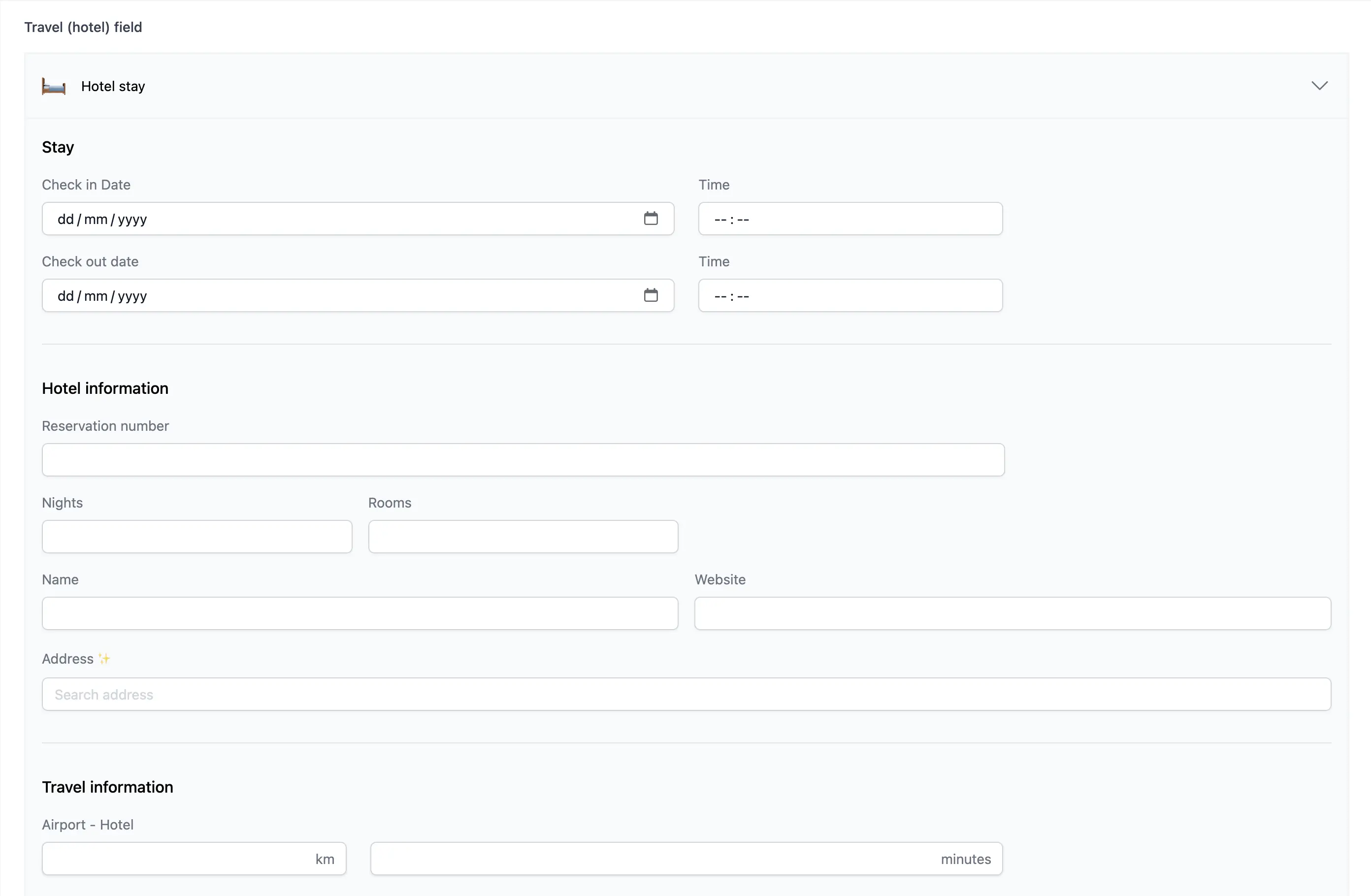 En el formulario de advancing, puedes incluir campos específicos de Artistu Event. Por ejemplo, puedes pedir al promotor que proporcione los detalles del hotel.