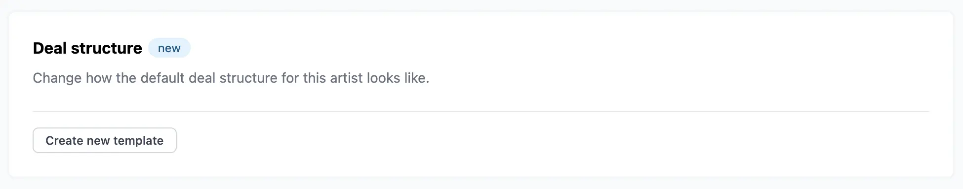 Para crear una nueva plantilla de acuerdo, navega a la sección de plantillas de acuerdo del artista y haz clic en Create new template (Crear nueva plantilla).