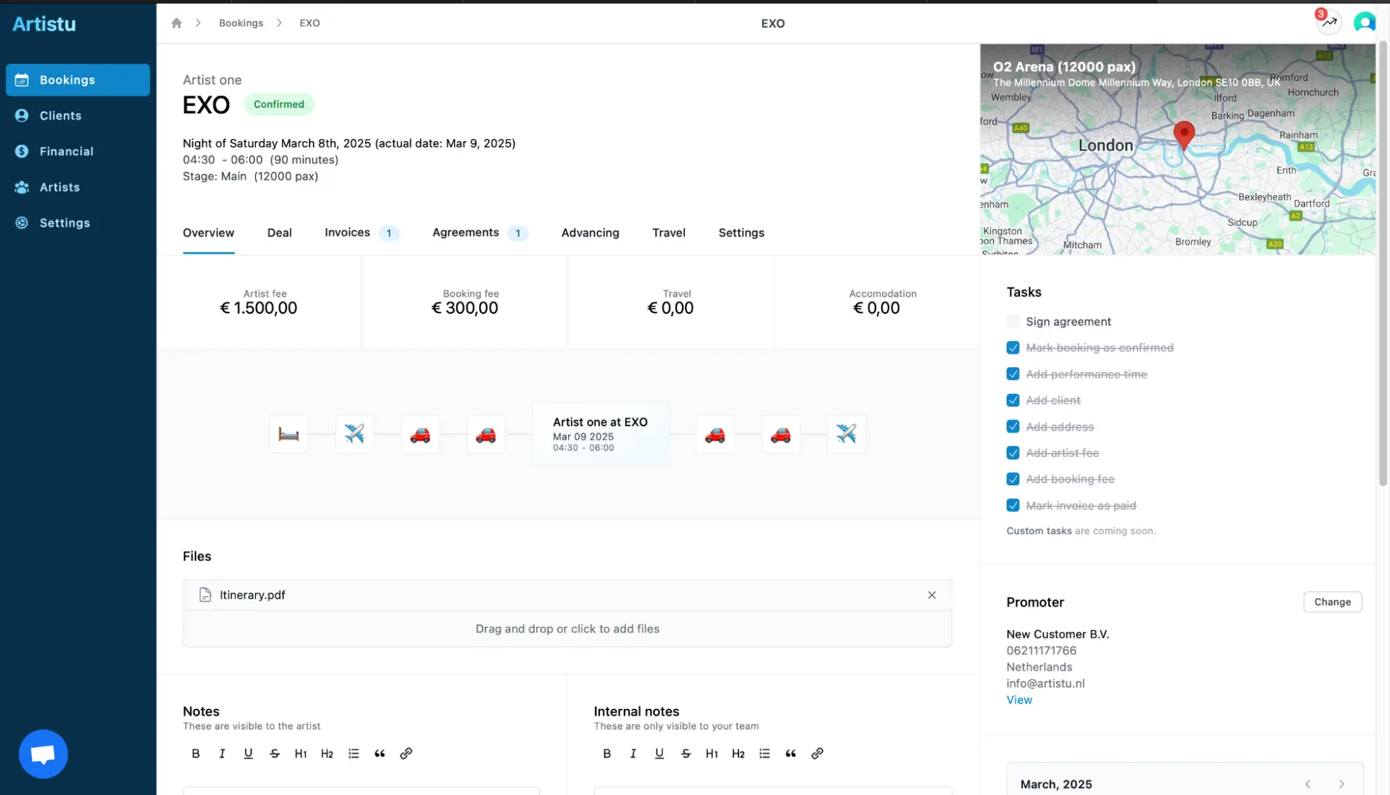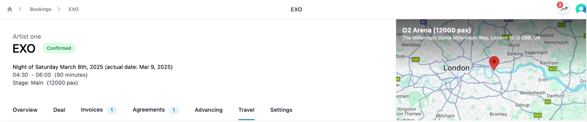 Esta característica ayuda tanto a tu equipo como al artista a mantenerse informados sobre las ubicaciones de los eventos y la planificación logística.