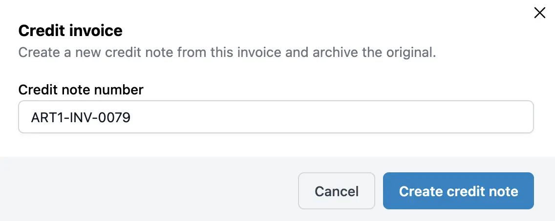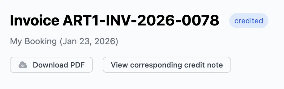 Se crea automáticamente una nueva factura (la nota de crédito) y se añade a tu lista de facturas. Puedes tratarla como cualquier otra factura: enviarla al cliente para sus registros, o guardarla para tu propia contabilidad interna.