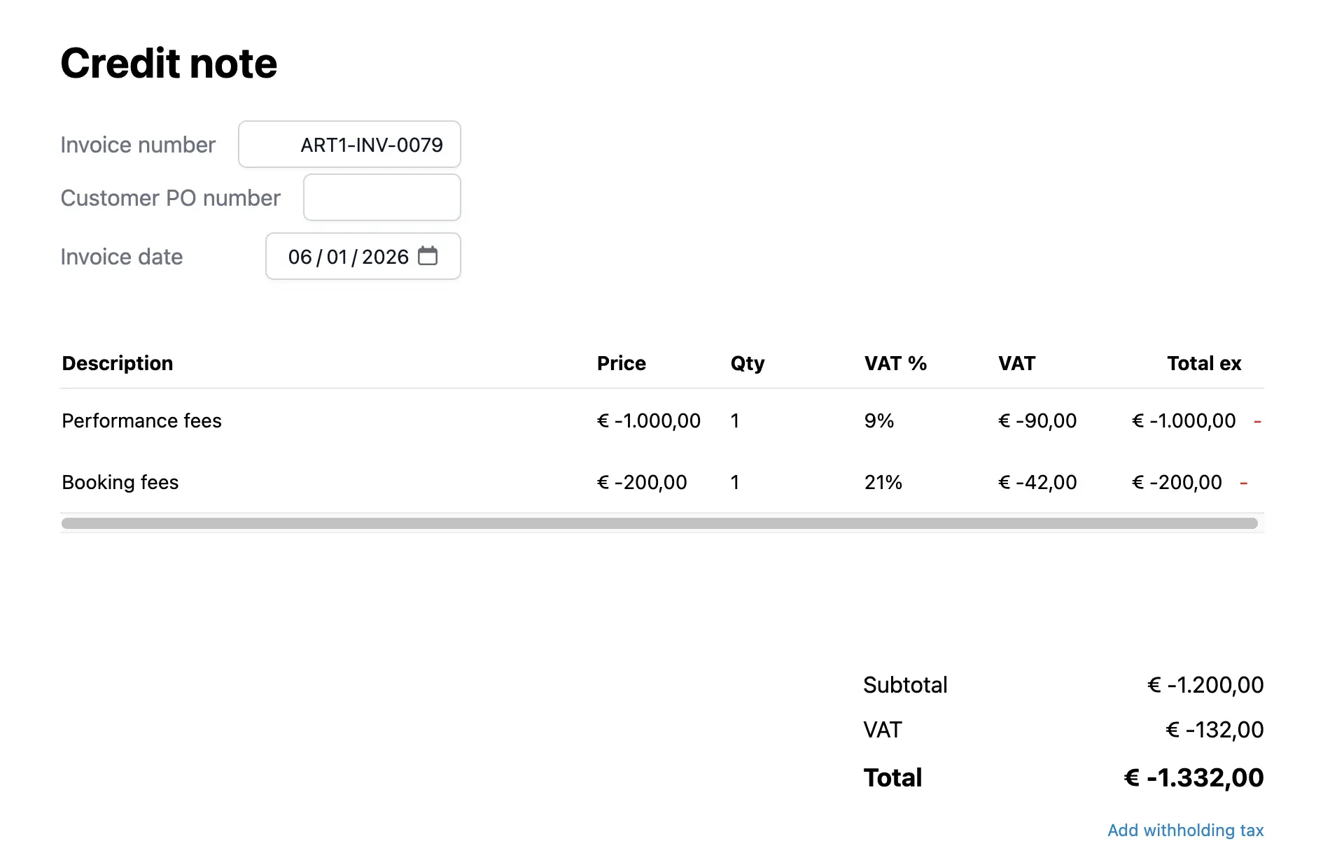 Artistu simplifica el proceso de reembolso o corrección de facturas con su función de nota de crédito automática.
